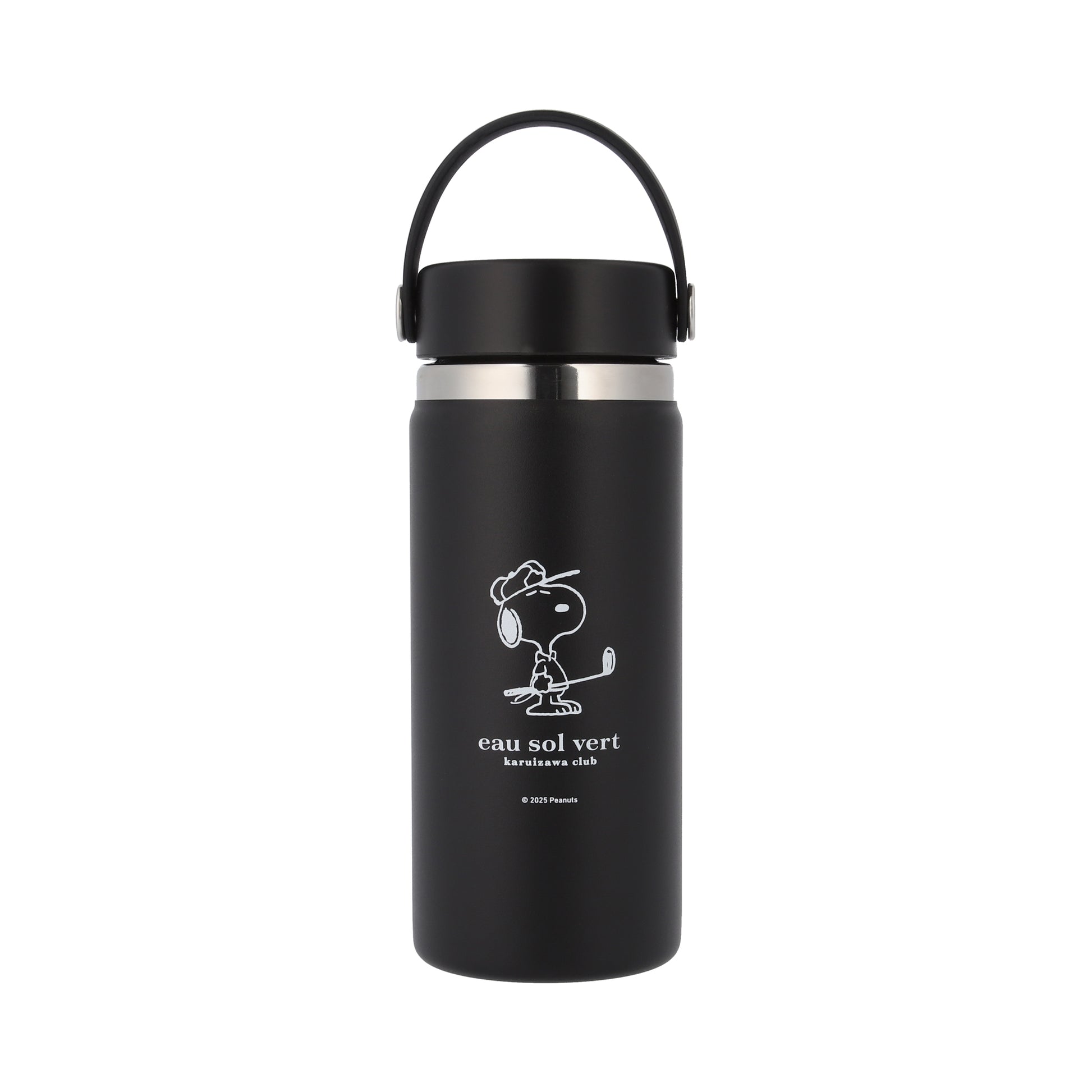 スヌーピーのオリジナルロゴがデザインされた、スタイリッシュで機能的なハイドロフラスク。